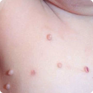 Infección producida por un poxvirus, transmisible y que se caracteriza por la aparición de “granitos” desde 1 mm hasta alcanzar varios centímetros del color de la piel o blanco-amarillentas que al exprimirlas sale un material “grumoso”.