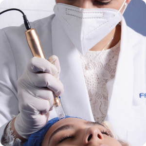 También llamada terapia de microneedling, es un procedimiento no quirúrgico mínimamente invasivo el cual consiste en realizar lesiones controladas con microagujas para inducir la formación de colágeno, elastina y vasos sanguíneos.